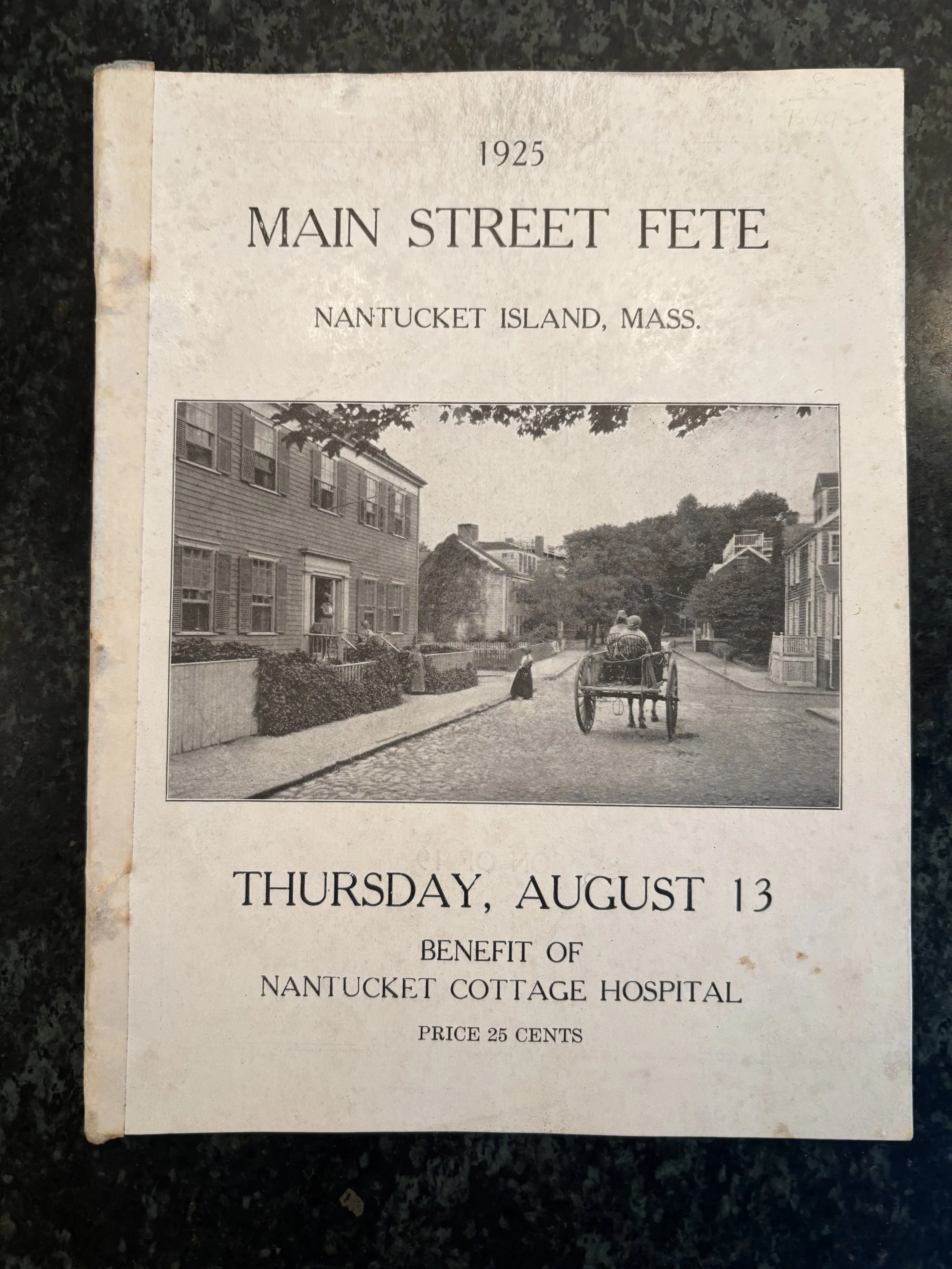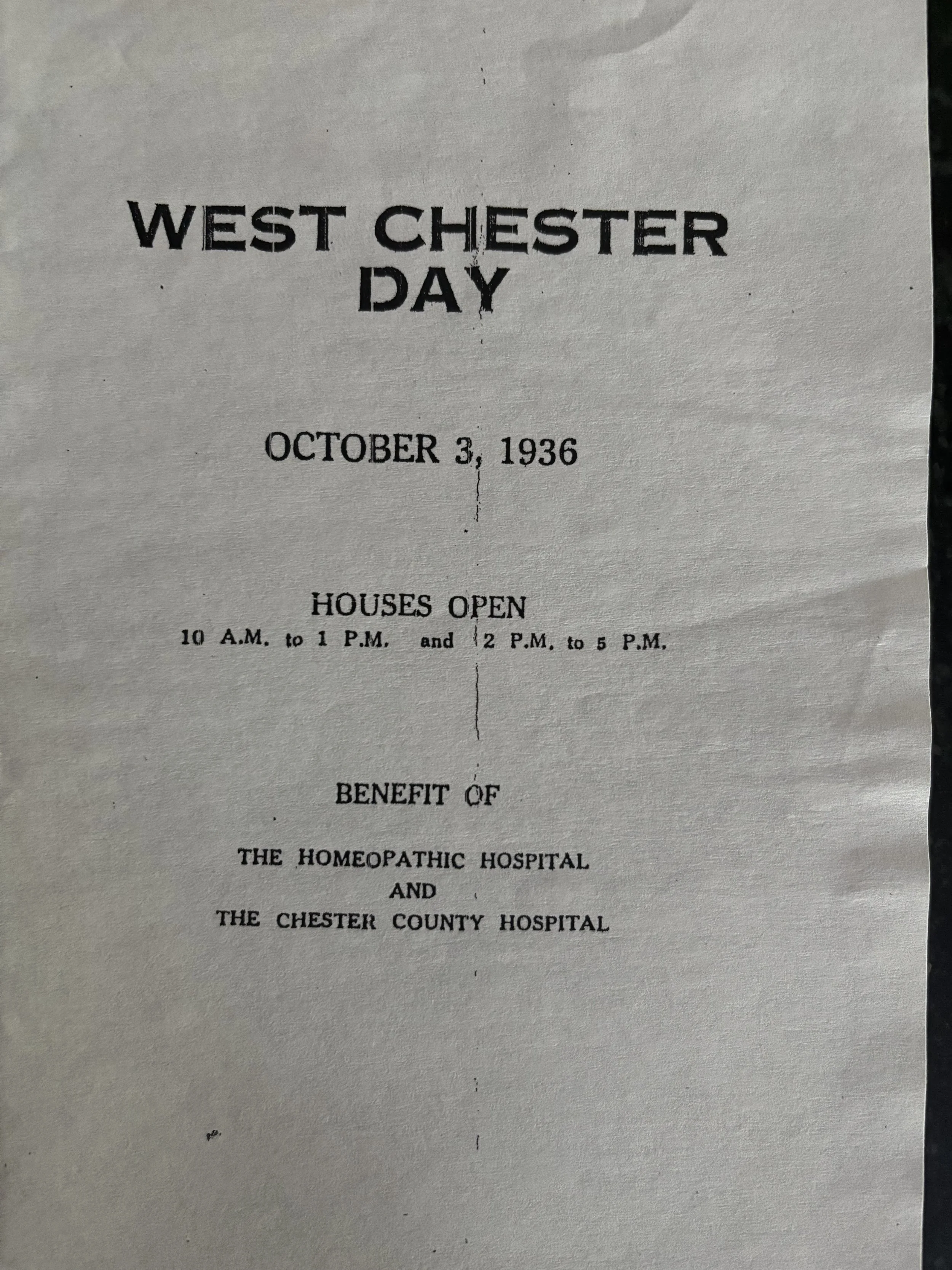 This Main Street Fete booklet from the Nantucket House Tour dates ten years prior to the inception of our West Chester Day- Chester County Day but was the inspiration for what has become the longest running house tour in the states and that has provided over $3,000,000 to the Chester County Hospital over the past 80 plus years. And, to think, a simple idea from a summer vacation could have continued on and delighted now thousands of guests on the first Saturday of October.